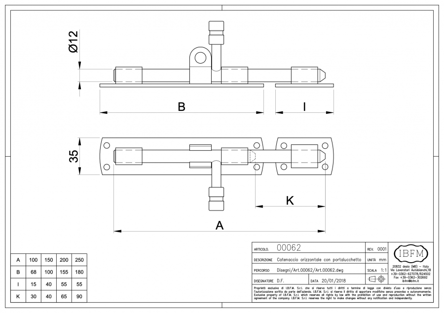 Horizontal bolt with padlocks to be screwed on wood and metal, to be used in order to lock openings.