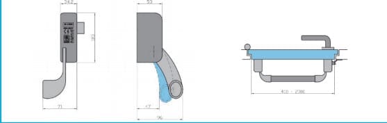• Can be installed also on doors with metal profiles and doors with mid-rail