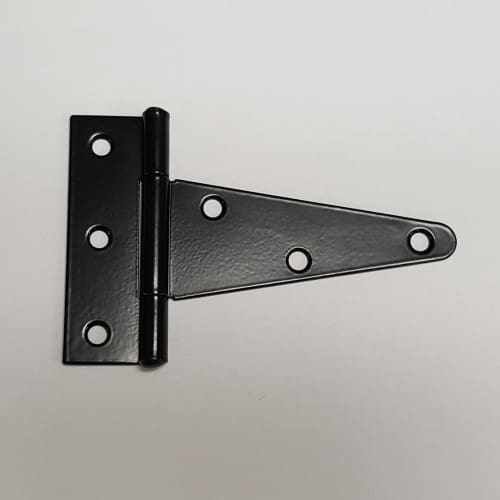 T-hinges, are heavy duty hinges commonly used for garage doors and gates. A T-hinge is a combination of a strap hinge and a butt hinge providing the perfect combination of style and functionality. It has countersunk holes for use with screws and generally mounts to wooden door frames and doors.