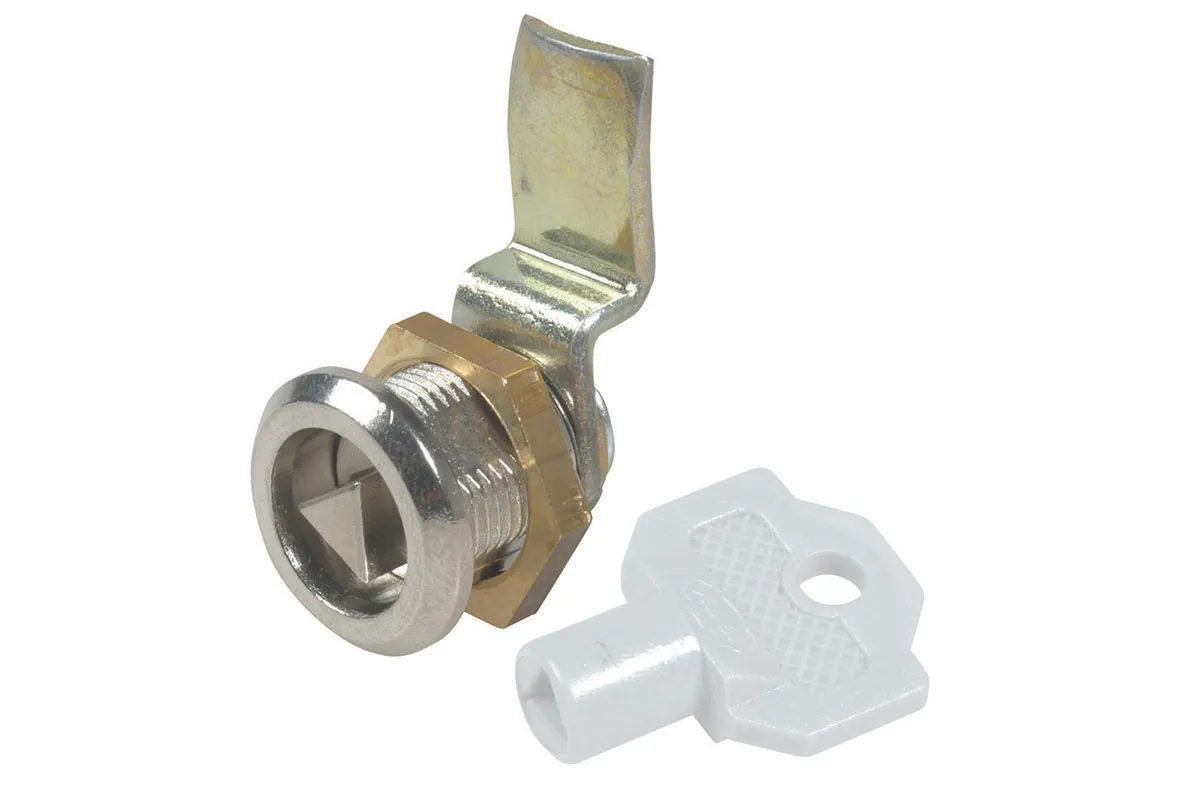 • Cylinder cam lock with triangular key for small openings and technical cabinets, suitable to be screwed on metal surfaces thanks to the included brass nut.