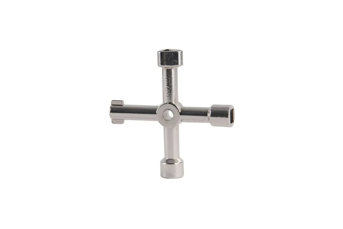 Useful key for latches with four functions: squared key hold 6mm and 8mm, triangular and round keyholder.