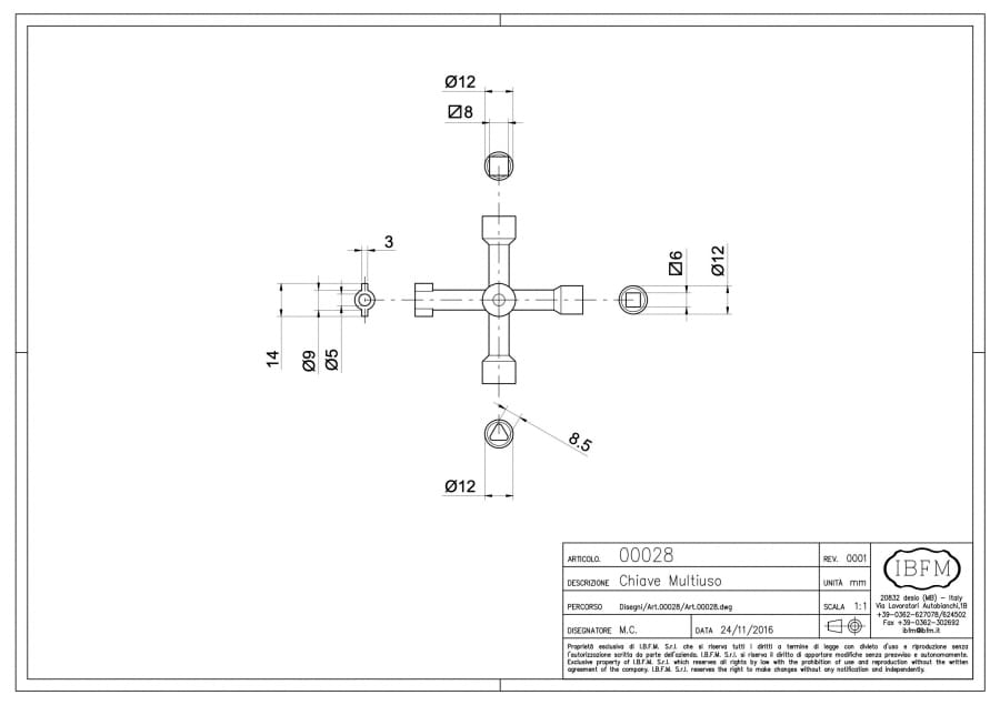 Multitrade Malta Locks – IBFM28: Key in Zamak – 4 Functions