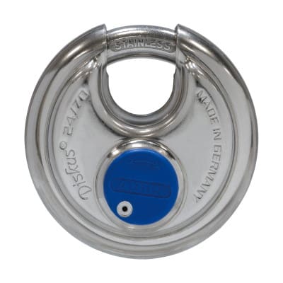 The shape of the Diskus® lock provides effective protection against the most common ways of gaining entry. The design of the small shackle opening means there is hardly any space for attacks on the shackle. As the ABUS Diskus® lock is made primarily of stainless steel, it is used particularly where security and protection against corrosion are required. Trucks, doors, gates, barns, cellars, sheds, etc., can all be locked with the ABUS Diskus® 24IB. Should ideally be used with an ABUS Diskus® hasp so the lock shackle cannot be attacked with tools.