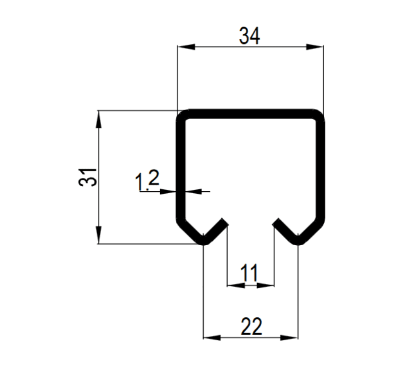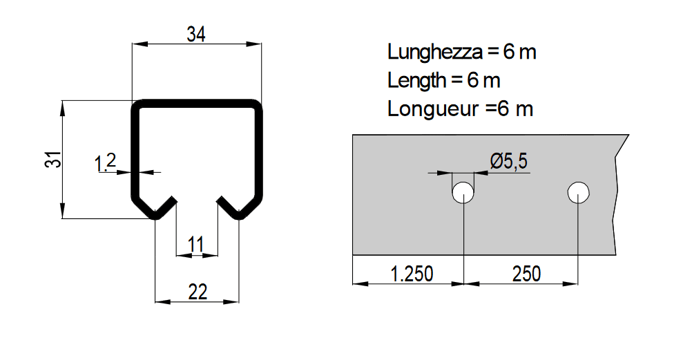 • Drilled rail in zinked steel rail for garage doors and gates