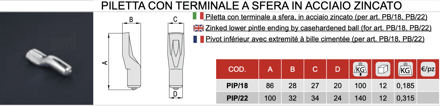 • Zinked lower pintle ending by casehardened ball for item PPB/18