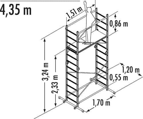 - Multipurpose: for use as a lean-to ladder and double ladder, as a small scaffolding unit for indoors and outdoors or as a platform for working