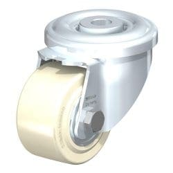 Made of high-quality, impact-resistant, hard and tough, highly compressed cast nylon with outstanding load capacity, very low rolling and swivelling resistance, smooth running performance on even floors, very high abrasion resistance.