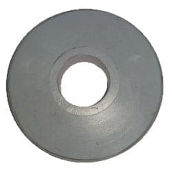 Trolleys are kept away from scratching walls by means of bumpers which are fitted slightly above the wheels. They vary in sizes between 80 and 125 mm. They are normally either made of rubber or PVC. Model BLARG100/R26 is gray in colour, while the outer diameter of this rubber bumper is 100 mm. It has a 30 mm round center hole.
