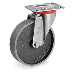 Intended mainly for static uses and for high carrying capacities. The model with plain bore is resistant to temperatures from -40 C to +400°C and is, therefore, particularly suitable for oven applications. To use a castor at temperatures above 100 °C, the wheel needs to be fitted with a specific bracket for high-temperature use.Technical features
