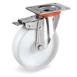 • Wheel / Castor Type: POLYAMIDE 6 WHEELS, Swivel top plate bracket type NLX (inox) with front lock