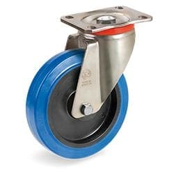 Non-marking blue elastic rubber wheels; hardness 70 Shore A. Polyamide 6 centre.