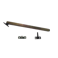 This zinc alloy window stay is used to hold windows open in various positions. In Malta and Gozo, it is mostly found on aluminum casement windows, but it can easily fit on to steel, plastic, and wood. Peg stay reference 0246T is yellow zinc plated (tropicalizato). It has a length of 250 mm, a width of 12 mm and a height of 10 mm. This type of stay has been used in Malta for over four decades.
